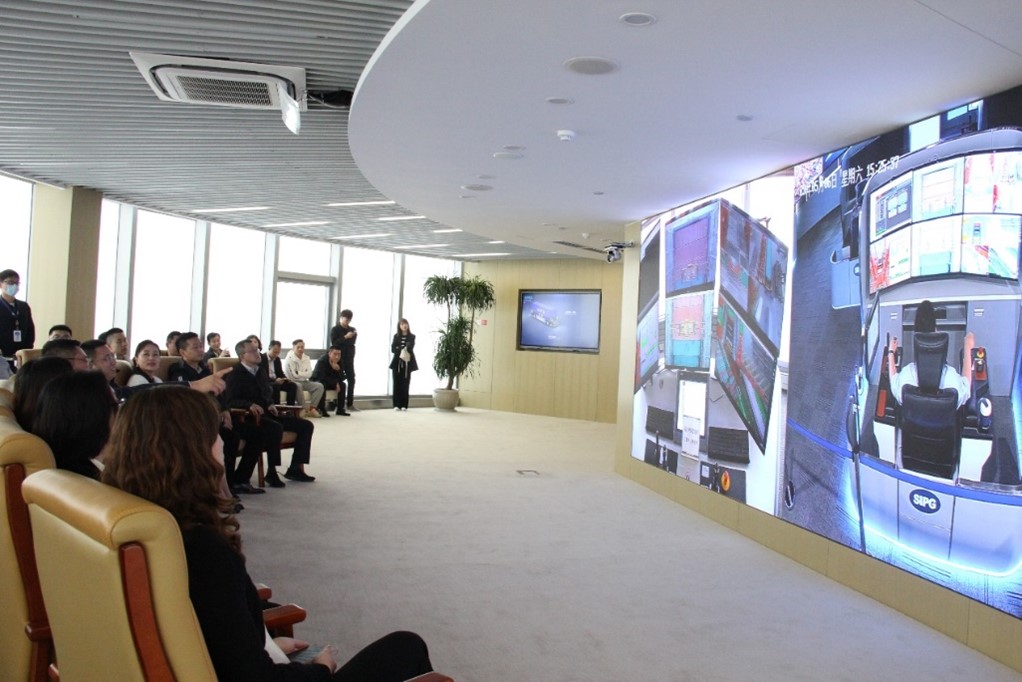 接著,實(shí)地參觀了洋山深水港四期自動(dòng)化碼頭,觀看了宣傳片,在工作人員的專業(yè)講解下深入了解碼頭全流程自動(dòng)化裝卸工作,觀摩作業(yè)現(xiàn)場,對四期的智能化程度有了直觀的認(rèn)識,深感震撼:碼頭上幾乎空無一人,采用遠(yuǎn)程操控雙小車橋吊,無人自動(dòng)導(dǎo)引車在港區(qū)內(nèi)自如穿梭,通過碼頭上埋設(shè)的六萬多枚磁釘進(jìn)行定位和導(dǎo)航,全自動(dòng)軌道吊靈活精準(zhǔn),提高堆場作業(yè)效率。各種自動(dòng)化設(shè)備及其背后的智慧大腦“中國芯”ITOS系統(tǒng)一同實(shí)現(xiàn)了碼頭作業(yè)從傳統(tǒng)勞動(dòng)密集型向自動(dòng)化智能化的革命性轉(zhuǎn)變,大大減少了人工投入和碳排放,提高了港區(qū)作業(yè)效率。
