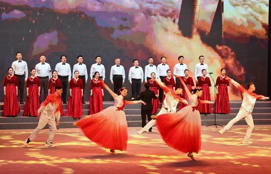德匯集團(tuán)作為浦東工商聯(lián)副主席單位參與展演,奉獻(xiàn)了開場節(jié)目——小組唱:《不忘初心》,體現(xiàn)了集團(tuán)公司秉承“科技德匯、融聚智慧”的企業(yè)理念,致力于尖端科研技術(shù)產(chǎn)業(yè)化、科技報國的初心不變。節(jié)目由集團(tuán)公司領(lǐng)導(dǎo)帶隊,部分青年員工代表共同演繹,演唱者聲情并茂、蕩氣回腸,用歌聲表達(dá)了對祖國的熱愛,展現(xiàn)了德匯集團(tuán)積極向上的精神風(fēng)貌。節(jié)目背景呈現(xiàn)出集團(tuán)聚焦科技創(chuàng)新前沿,致力材料科技、光電科技和智能科技三大領(lǐng)域,建立完整的科技創(chuàng)新體系的場景,與歌曲演唱完美融合。晚會最后,新區(qū)工商聯(lián)副主席、德匯集團(tuán)董事長薛加玉參與大合唱《我和我的祖國》,彰顯了新時代民營企業(yè)家精神。