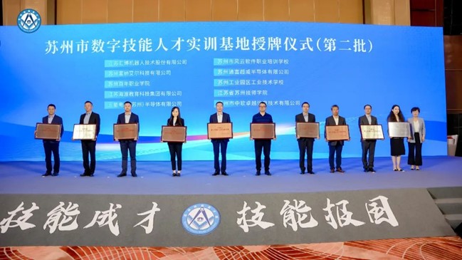 11月4日,第六屆蘇州技能英才周勝利開幕。開幕式上,匯博機器人入選“蘇州市數字技能人才實訓基地”,匯博機器人吳博雄榮獲“江蘇省企業首席技師”和“蘇州市數字技能首席技師工作室”稱號,助推數字技能人才隊伍建設,促進數字經濟高質量發展。