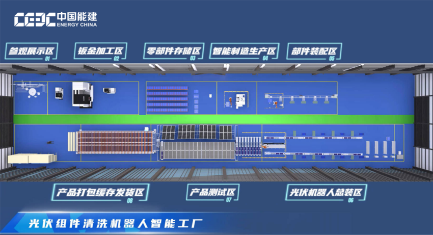 光伏清潔機器人智能生產線,涵蓋了零部件存儲、零件智能制造、部件組件裝配、總裝、整機檢測、打包發貨等六大區域。各工作站獨立完成單一工序生產任務,同時相互配合,物流設備串聯各工作站,實現從原材料輸入到成品輸出的無縫對接。這一流程不僅提高了生產效率,還確保了每一個環節的精準與高效,為光伏電站的清潔運維提供了堅實保障。