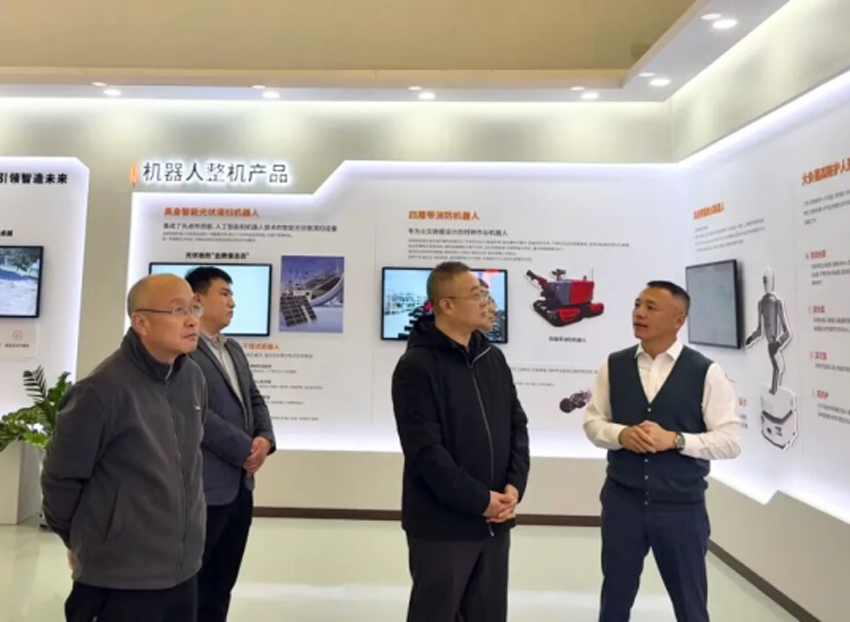 調(diào)研中,支向陽副縣長深入中心生產(chǎn)一線,通過聽取匯報、實地查看等方式,先后走訪零部件智能制造區(qū)、智能測試區(qū)及整機(jī)體驗區(qū)等,詳細(xì)了解匯博機(jī)器人在機(jī)器人關(guān)鍵領(lǐng)域的自主創(chuàng)新實踐。