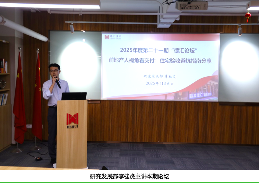 宣講結(jié)束后,2025年第二十一期“德匯論壇”正式開始,本期主題為《前地產(chǎn)人視角看交付:住宅驗收避坑指南分享》,由研究發(fā)展部李桂炎主講。李桂炎擁有前地產(chǎn)行業(yè)工作經(jīng)驗,既熟悉裝修供應(yīng)商運作邏輯,也了解業(yè)主核心需求,為大家?guī)砹思婢邔嵱眯耘c針對性的住宅裝修全流程避坑技巧。